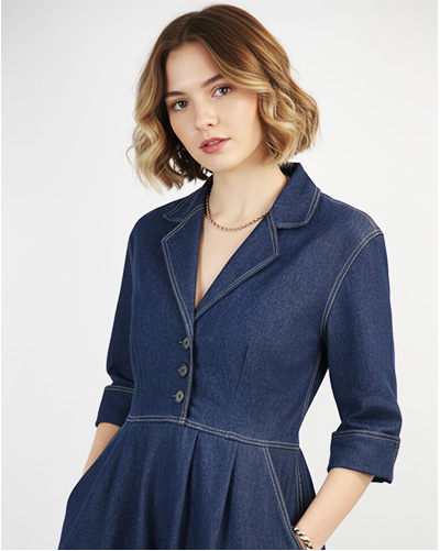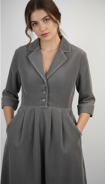 So at last I'm free to get on with new designs! I think you will love the 710 Shirtwaister Dress. It was fun getting exactly the look I wanted - it's both casual and formal. I love the tailored collar and the off the shoulder sleeve gives it a relaxed feel. Having a defined waist makes it easier to wear in some cases than a loose shirtdress that is pulled in with a sash. Front pleats and roomy pockets complete the look.